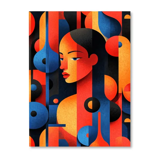 Abstrakcyjny obraz z motywem inspirowanym geometrią i kobiecym pięknem. Przedstawia nieszablonowe połączenie barw i kształtów razem tworzących spójną całość. Każdy z nas dostrzega w tej kompozycji coś innego - skłaniającego do osobistych przemyśleń. Wydruk w stylizacji farb olejnych. Ogromna szczegółowość wydruku w najdrobniejszym detalu robi niesamowite wrażenie.