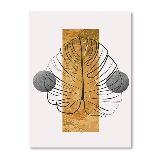 Abstrakcyjny obraz z motywem inspirowanym naturą i geometrą. Przedstawia motyw roślinny połączony z trzema geometrycznymi kształtami o nieregularnej powierzchni symbolizujące ziemię i dwa księżyce. Ogromna szczegółowość wydruku w najdrobniejszym detalu robi niesamowite wrażenie.