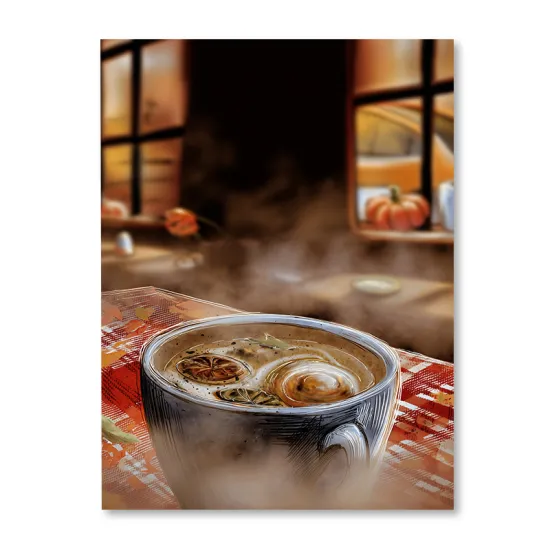 Obraz przedstawiający dyniowe spice latte idealnie nadającą się do kuchni lub jadalni. Wydruk w stylizacji farb olejnych. Ogromna szczegółowość wydruku w najdrobniejszym detalu robi niesamowite wrażenie.