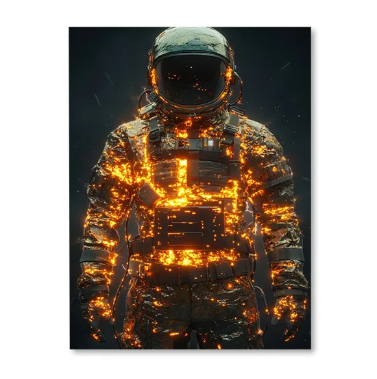 Obraz inspirowany futurystycznym kombinezonem kosmicznym. Wydruk w stylizacji farb olejnych. Ogromna szczegółowość wydruku w najdrobniejszym detalu robi niesamowite wrażenie.