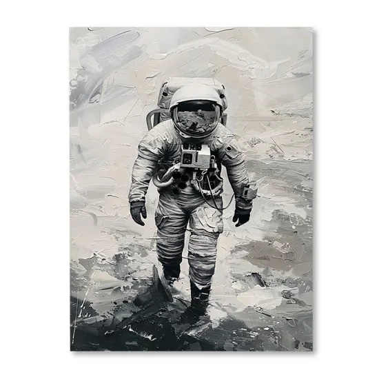 Obraz inspirowany bezmiarem kosmosu i podróżami człowieka w nieznane. Wydruk w stylizacji farb olejnych. Ogromna szczegółowość wydruku w najdrobniejszym detalu robi niesamowite wrażenie.