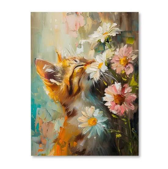 • Kot wąchający kwiaty