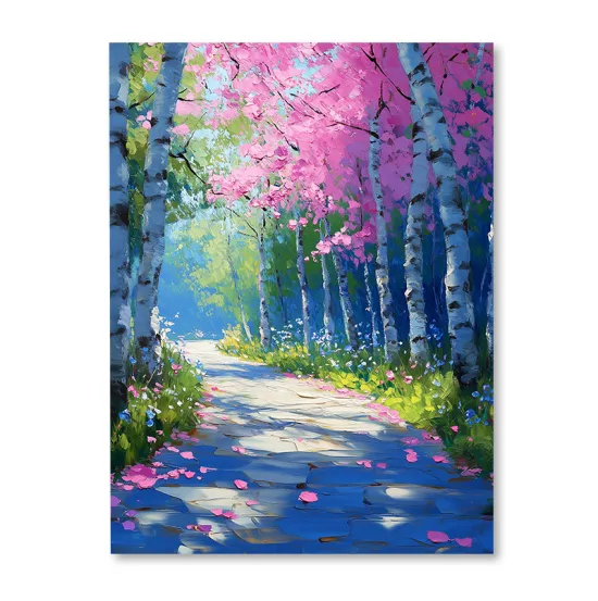 Obraz z motywem inspirowanym naturą przedstawiający alejkę wsród brzóz.  Ogromna szczegółowość wydruku w najdrobniejszym detalu robi niesamowite wrażenie.