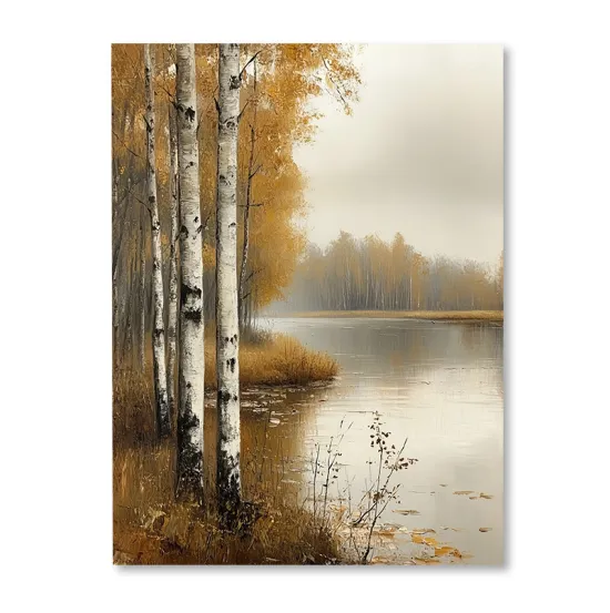 Obraz z motywem inspirowanym naturą przedstawiający brzozy nad zalewem.  Ogromna szczegółowość wydruku w najdrobniejszym detalu robi niesamowite wrażenie.