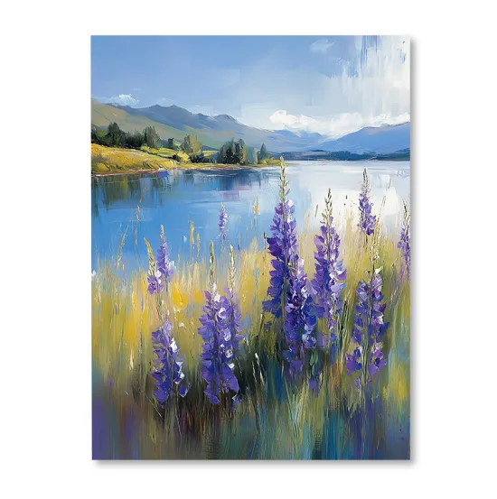 Obraz z motywem inspirowanym naturą przedstawiający kwiaty nad jeziorem.  Ogromna szczegółowość wydruku w najdrobniejszym detalu robi niesamowite wrażenie.