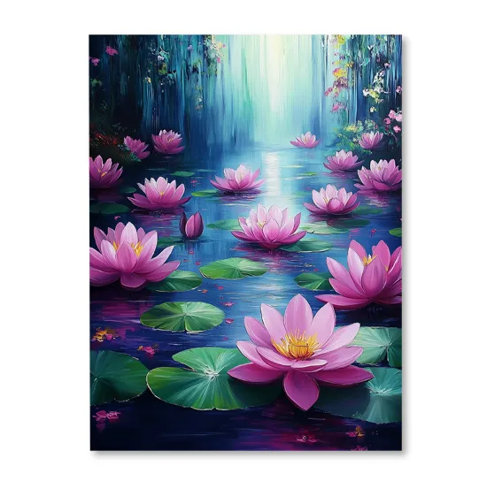 Obraz z motywem inspirowanym naturą przedstawiający lilie na wodzie.  Ogromna szczegółowość wydruku w najdrobniejszym detalu robi niesamowite wrażenie.