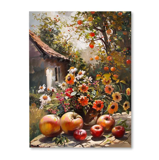 Obraz z motywem inspirowanym naturą przedstawiający owoce w sadzie.  Ogromna szczegółowość wydruku w najdrobniejszym detalu robi niesamowite wrażenie.