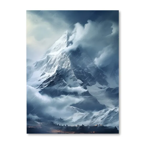 Obraz z motywem inspirowanym naturą przedstawiający osadę pod szczytem góry.  Ogromna szczegółowość wydruku w najdrobniejszym detalu robi niesamowite wrażenie.