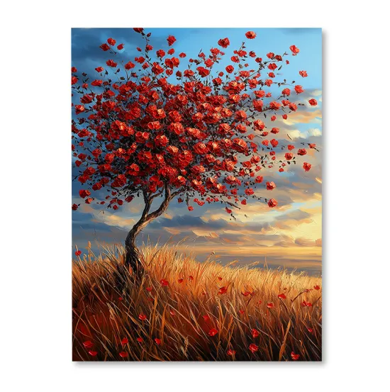 Obraz z motywem inspirowanym naturą przedstawiający drzewo pokryte różami.  Ogromna szczegółowość wydruku w najdrobniejszym detalu robi niesamowite wrażenie.