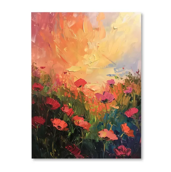 Obraz z motywem inspirowanym naturą przedstawiający zachód słońca nad polem maków.  Ogromna szczegółowość wydruku w najdrobniejszym detalu robi niesamowite wrażenie.