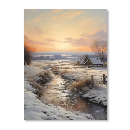 Obraz z motywem inspirowanym naturą przedstawiający zimę na wsi.  Ogromna szczegółowość wydruku w najdrobniejszym detalu robi niesamowite wrażenie.
